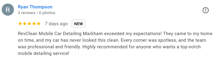 At RevClean Mobile Car Detailing in Markham, customer satisfaction is our top priority. Once your service is completed, we walk you through the results before any payment is processed. If anything isn’t up to your expectations, we fix it immediately — you don’t pay until you’re completely satisfied.