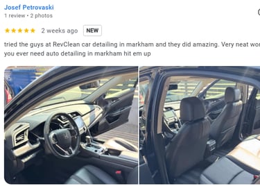 From deep interior cleaning, shampooing, and stain removal to careful hand washing and protective exterior finishes, RevClean delivers premium auto detailing in Markham with a focus on quality, precision, and customer satisfaction.